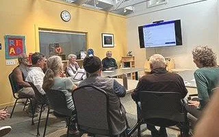 Almost thirty people attended this lively workshop at the Point Reyes Library hosted by Kathy Hunting and Scoby Zook. Kellen Dammann from the Marin County Office of Sustainability led off with an overview of home heating and cooling; electrical panel issues; appliances; and solar panels and storage batteries. Most of the ninety-minute session involved the audience asking questions, and the entire group, including local electricians, academics, and homeowners helping with answers. There was such good buzz than many people stayed after the official ending to have more time on this important subject.